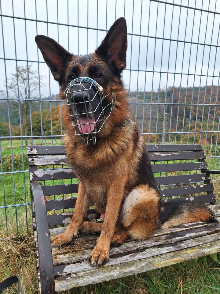 Ich kenne den Maulkorb und trage diesen unterwegs problemlos. Mit Artgenossen bin ich nach Sympathie gut verträglich.