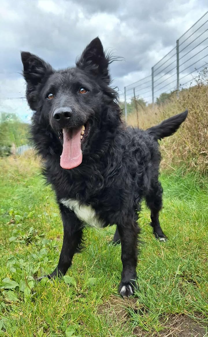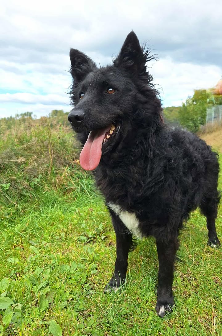 Unterwegs an Geschirr und Leine laufe ich gut mit, möchte aber gerne immer etwas Abstand haben und selbst entscheiden wie nah ich kommen mag. Ich bin sehr eigenständig und muss erst noch lernen, dass ich mit dem Menschen kommunizieren kann.
